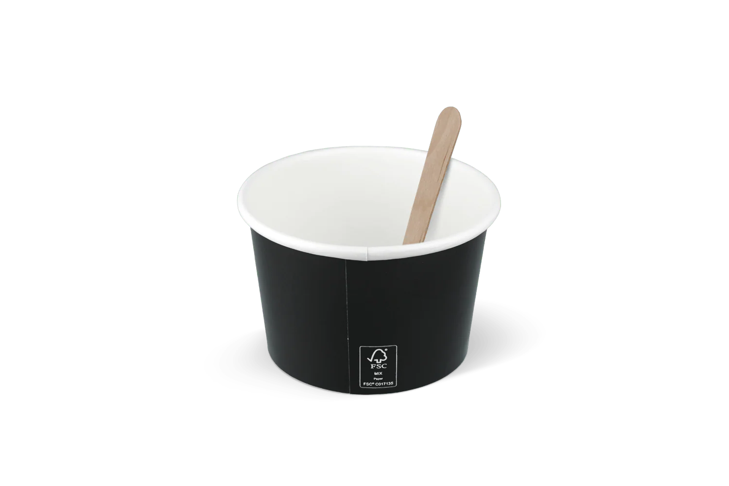 The black color gives this ice cream cup a modern and luxurious appearance. This makes it perfect for premium ice cream parlors and hospitality concepts.
