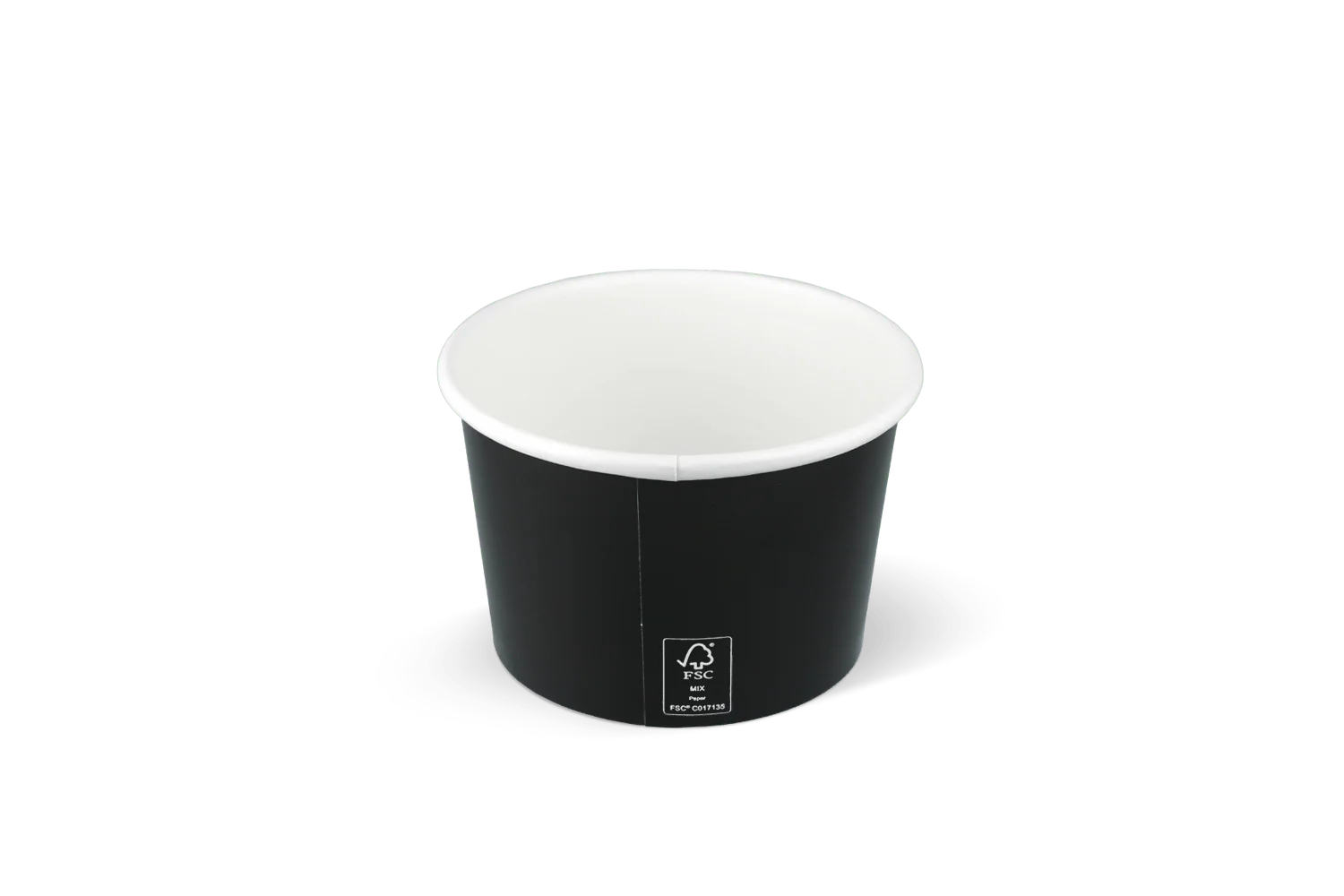 The 240ml Ø90mm 8oz black cardboard ice cream cup is a practical and stylish solution for ice cream parlors, hospitality, and takeaway. These cardboard ice cream cups are ideal for serving ice cream, gelato, and other desserts.