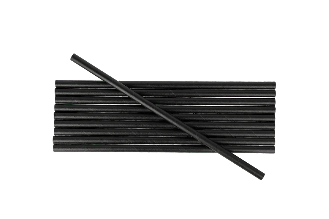 The BIO 200 x 8 mm black paper straws are an environmentally friendly solution for restaurants, bars, catering, and events. These straws are ideal for cocktails, smoothies, soft drinks, and bubble tea.